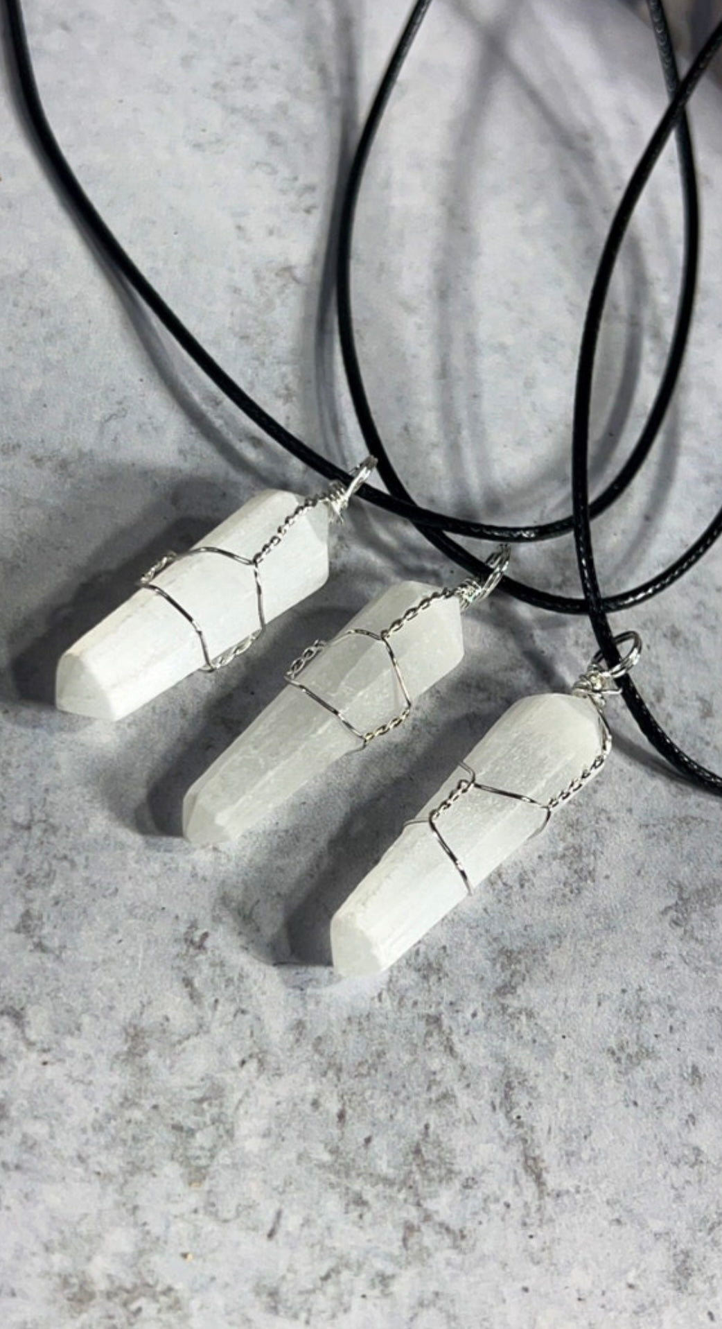 Wire Wrapped Selenite Crystal Necklace